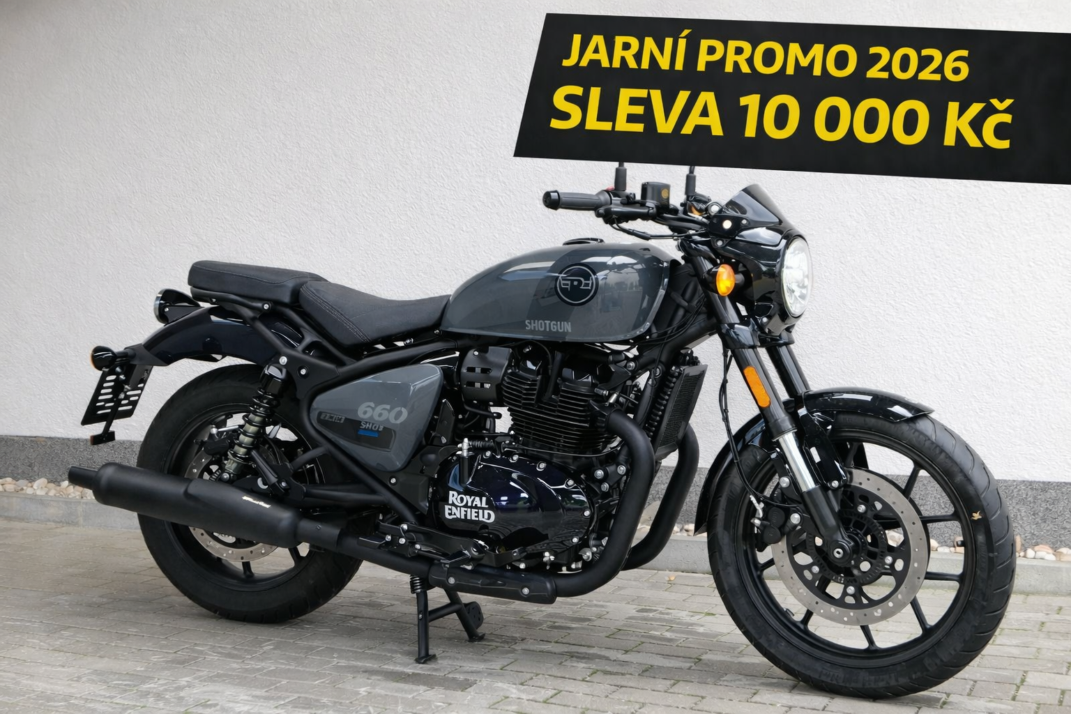 Nový Royal Enfield Shotgun 650 je motocykl, který je definován svým jezdcem. Jeho zcela nová karoserie a postoj jsou prázdným plátnem, které se vzpírá tradiční kategorizaci motocyklů a přebírá osobnost svého jezdce. Jeho modulární konstrukce umožňuje snadné přepínání mezi třemi režimy - od jednomístného přes dvoumístný až po cestovní vůz pro přepravu zavazadel. Otočením klíčku se odklopí sedadlo spolujezdce, což nabízí maximální flexibilitu. Těm, kteří hledají poutavou a agresivní jízdu, nebo těm, kteří hledají pohodovější zážitek, Shotgun 650 bez námahy vyhoví svou vzpřímenou a jistou jízdní pozicí, která podporuje obojí a přizpůsobuje se náladě a stylu jízdy jezdce. Kombinuje retro-futuristický design s moderními prvky. LED světlomet umístěný v nádherné neomoderní gondole na zakázku zůstává věrný estetice neo-retro fúze a zároveň nabízí lepší viditelnost. Motocykl je vybaven digitálně-analogovým sdruženým přístrojem, který je vybaven navigačním systémem Tripper a je navržen tak, aby poskytoval všechny informace, které potřebujete, když se vydáte na cestu. Je také vybaven nabíjecím portem USB, abyste měli svá zařízení na cestách stále nabitá.